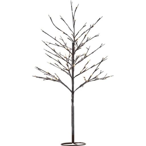 “Udendørs lystræ fra Sirius Super fint LED lystræ til udendørs (under udhæng, halvtag eller lign.) og indendørs brug, lavet med brune grene og stamme – og så er det beklædt med sne. Det er altså virkelig hyggeligt, og giver et virkelig hyggelig varmh