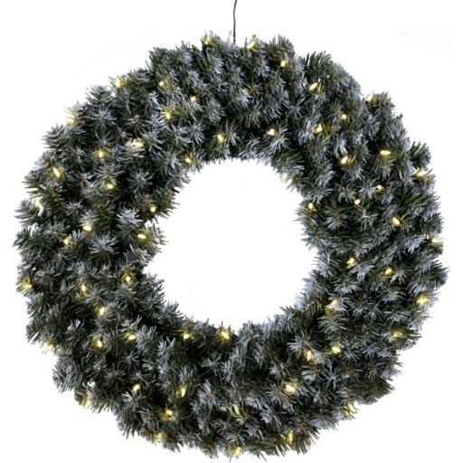 Elegant jule grankrans med sne og lys som virkelig formår at skabe julehygge. Du kan bruge Edmonton julekrans med sne og lys både udendørs og indendørs. Julekransen giver et dejligt og indbydene skær i den mørke decembermåned. Hæng den på hoveddøren, på s